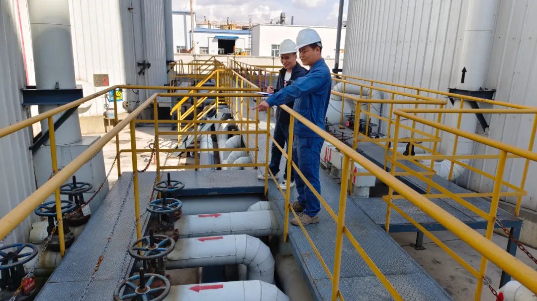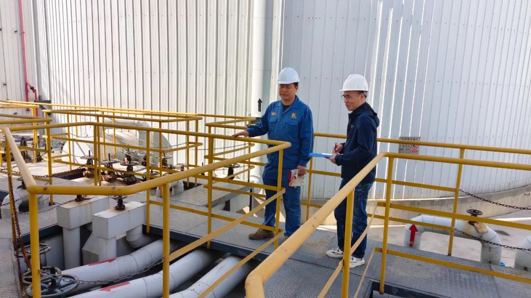 交流期间,西北大区新疆新立基生产团队介绍了公司基质沥青与改性沥青标准化作业流程、安全警示标识设置及应急设施配置情况,重点分享了设备全周期巡检维护机制、智能化安全监控系统,以及特种作业风险防控经验。