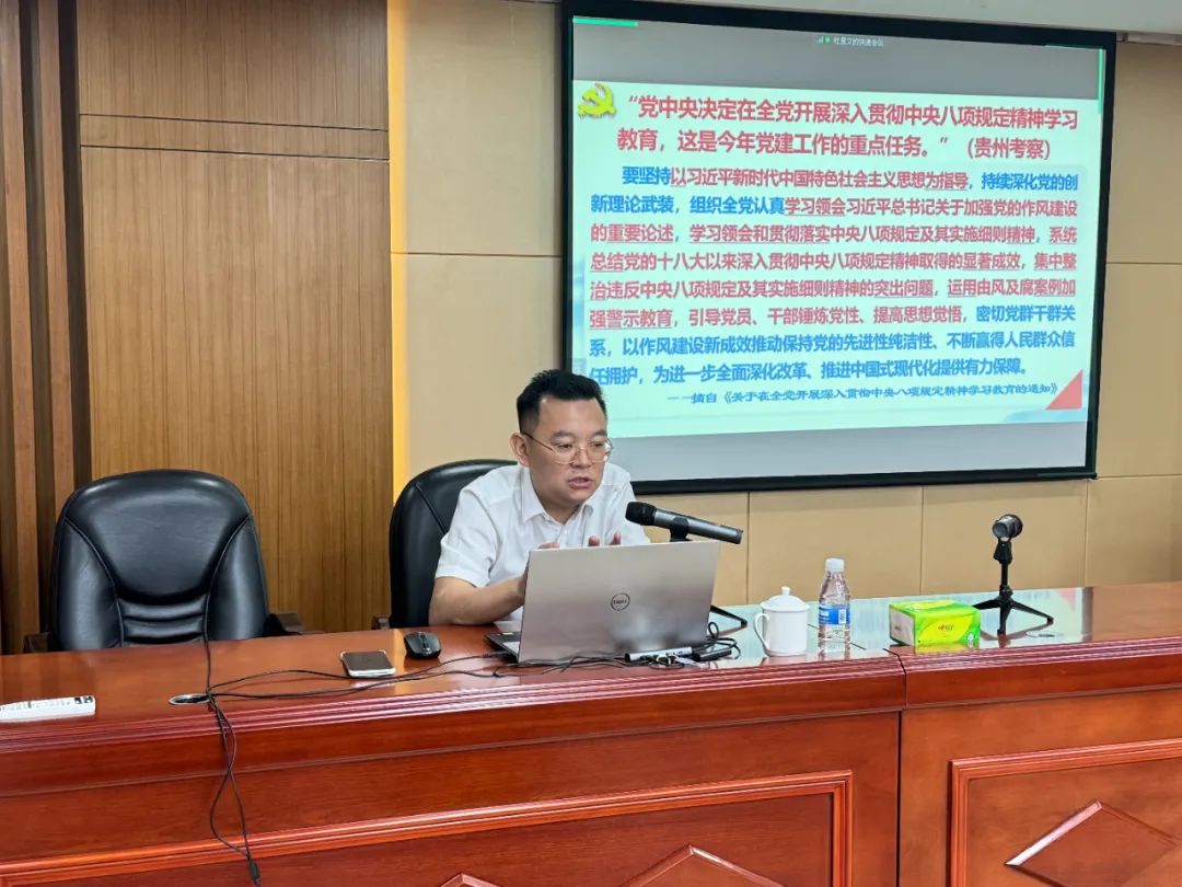 秦学主任以《中央八项规定开启中国共产党作风建设新时代》为主题展开专题培训。通过中央八项规定及其实施细则精神所蕴含的深邃战略考量、独特破题思路、如磐决心定力三个方面系统阐释了深入贯彻中央八项规定精神、解读贯彻中央八项规定精神的重大意义,并对《党政机关厉行节约反对浪费条例》进行剖析,学习中既有理论高度,又紧密联系案例与实际,为公司党员干部职工作了一场生动且深刻的作风建设课,对公司进一步开展好学习教育具有很好的指导意义和警示教育意义。