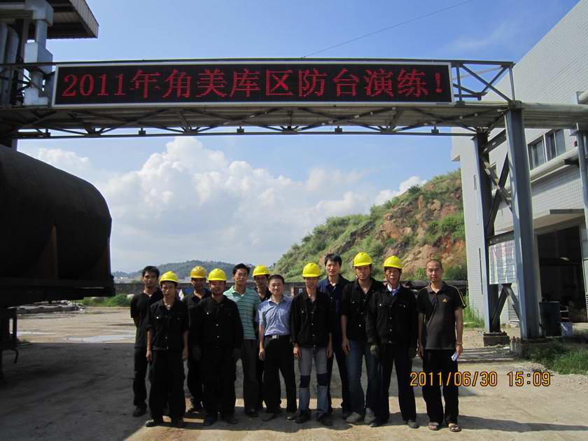 为宣传安全生产方针、政策、法律法规和安全知识,强化库区员工的安全意识,提高库区员工的安全素质,根据公司安全月活动方案要求,切实做好防台防汛工作,以防台风汛期对公司财产安全和员工人身安全造成损害。 2011年6月30日,开云官方网页版官网有限公司叶永杰副总经理主持举行了防台、防汛应急救援演练,角美库区全体人员参加演练。