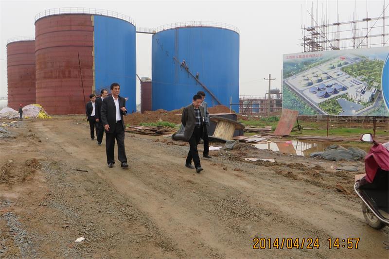 2014年4月3日下午15时,九江市浔阳区区委常委、副区长刘吾爱在公司在区政协副主席秦永红、园区办主任龚雪华、公司董事长王绪泉、法人代表朱勇进等的陪同下视察公司石化物流码头货物接卸准备工作及作业情况。