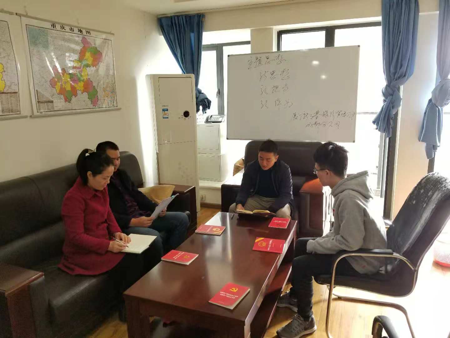 ▲2018年10月22日中共福州开发区路港沥青有限公司党支部由郭旸总经理主持召开“新思想、新担当、新作为”专题讨论会。在会上各党员学习了《关于进一步激励广大干部新思想新担当新作为的意见》文件精神,同时围绕习近平同志新时代中国特色社会主义思想和十九大精神,强化“四个意识”、坚定“四个自信”等方面进行讨论。大家纷纷认为分公司作为新立基公司在福州片区业务拓展经营企业,业务方面要紧紧围绕2018年生产经营任务,在保持原有市场的同时,努力拓展新业务,保持稳增长。生产方面要科学生产、安全生产,保质保量完成业务订单。廉政方面要坚守底线,干净做人、干净做事,全心全意为公司发展做贡献。