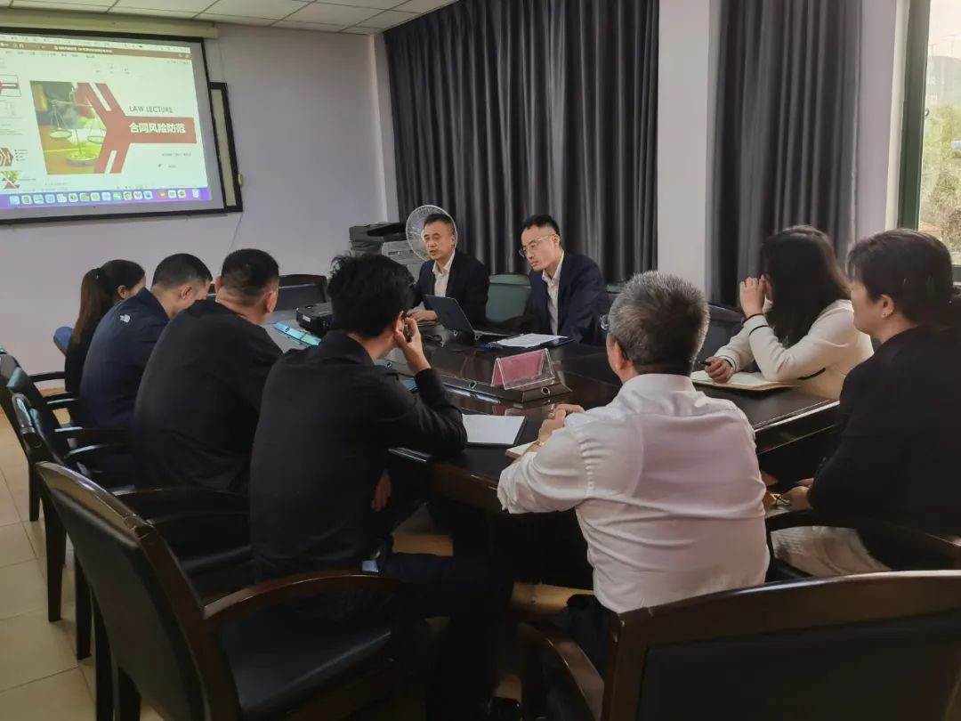 为提高公司员工合同风险防范意识,增强办公人员正确处理和解决法律问题的业务能力。2022年11月28日上午,吉安吉源公司组织开展普法宣传活动,特邀国浩律师事务所李彤律师、翁剑安律师做《合同风险防范》专题培训。