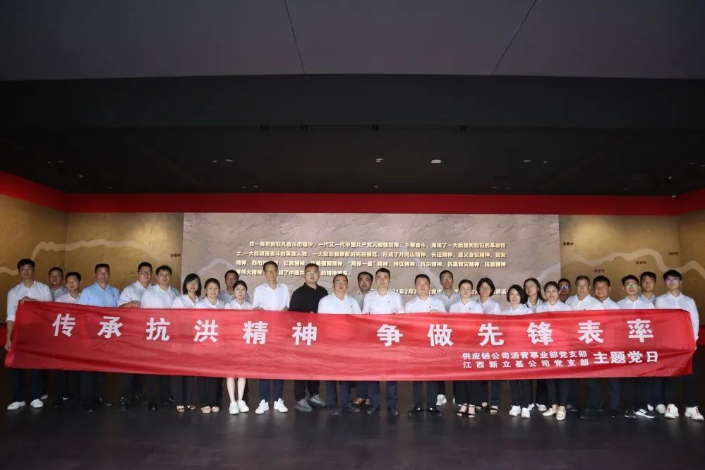 6月16日下午,江西新立基党支部联合江西交投供应链沥青事业部党支部付赴九江九八抗洪展陈馆,共同开展“传承抗洪精神,争做先锋表率”主题党日活动,双方党支部全体党员干部参加活动。